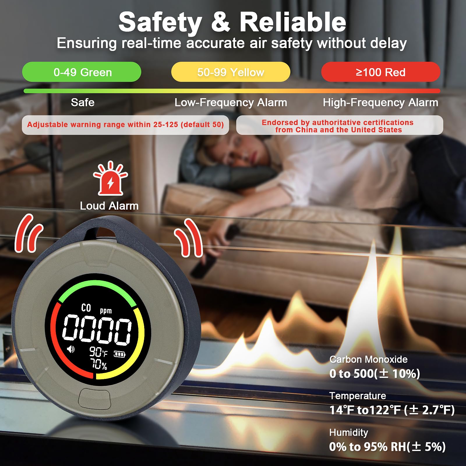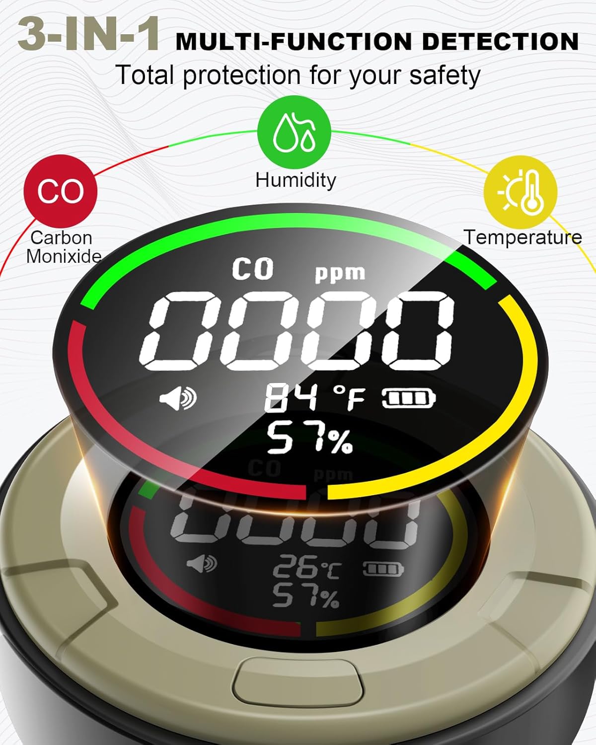 3-in-1 Portable Carbon Monoxide Detector for Travel Reliable CO Detector with Loud Alarm for Air Safety