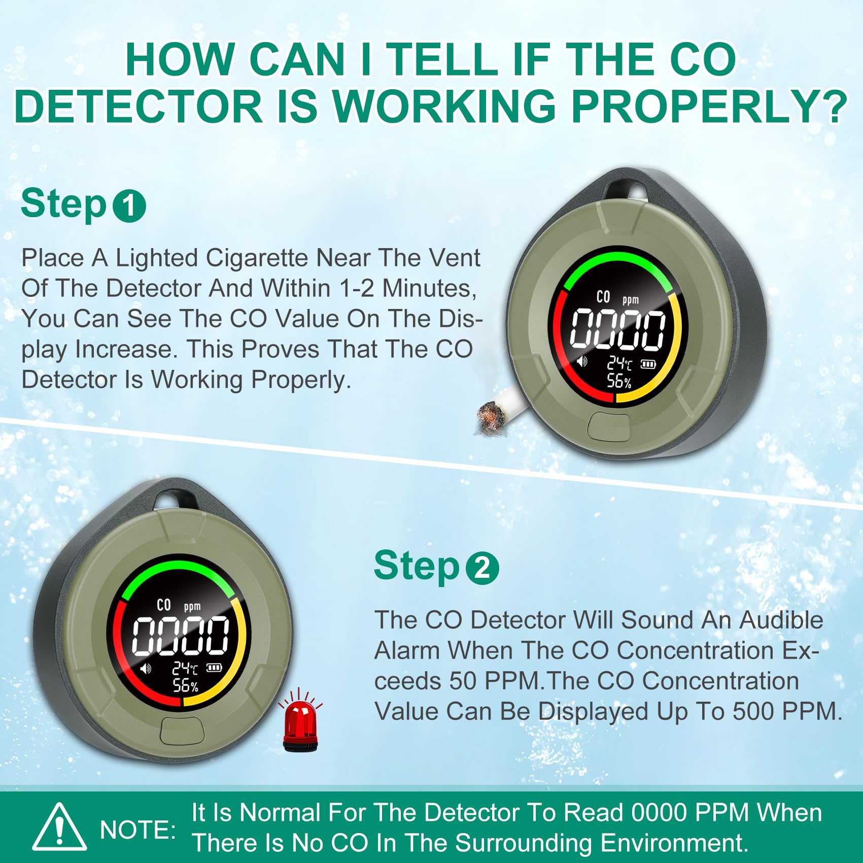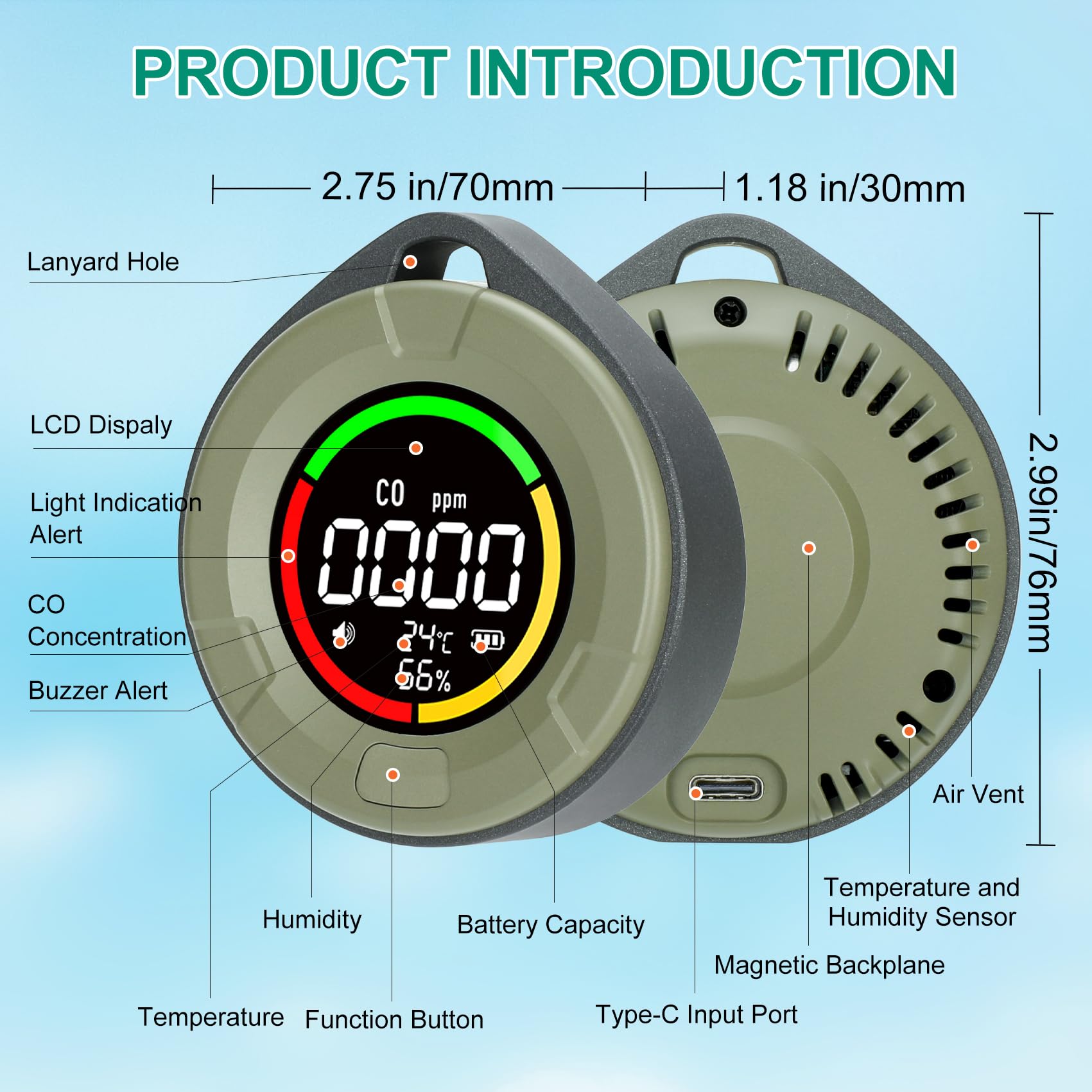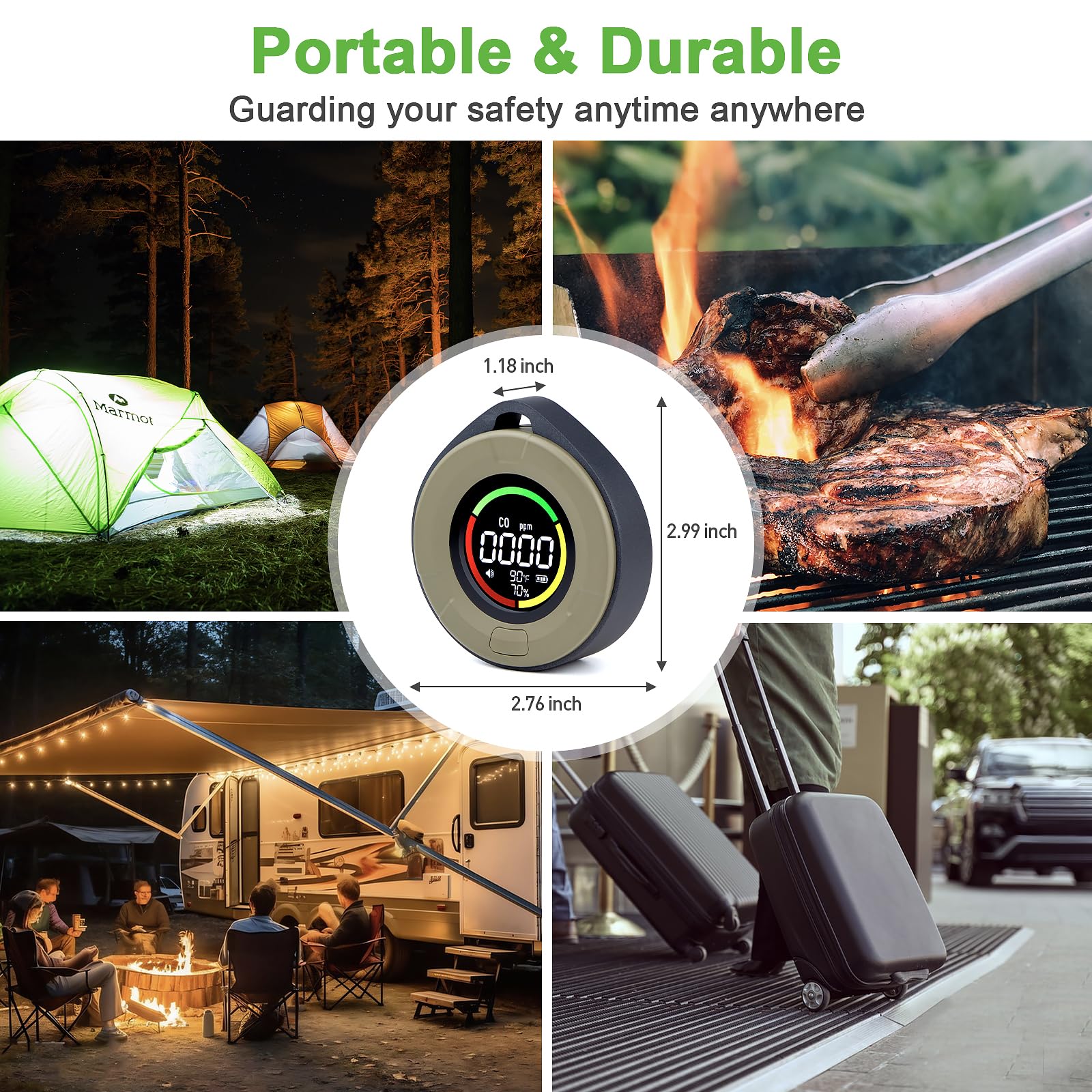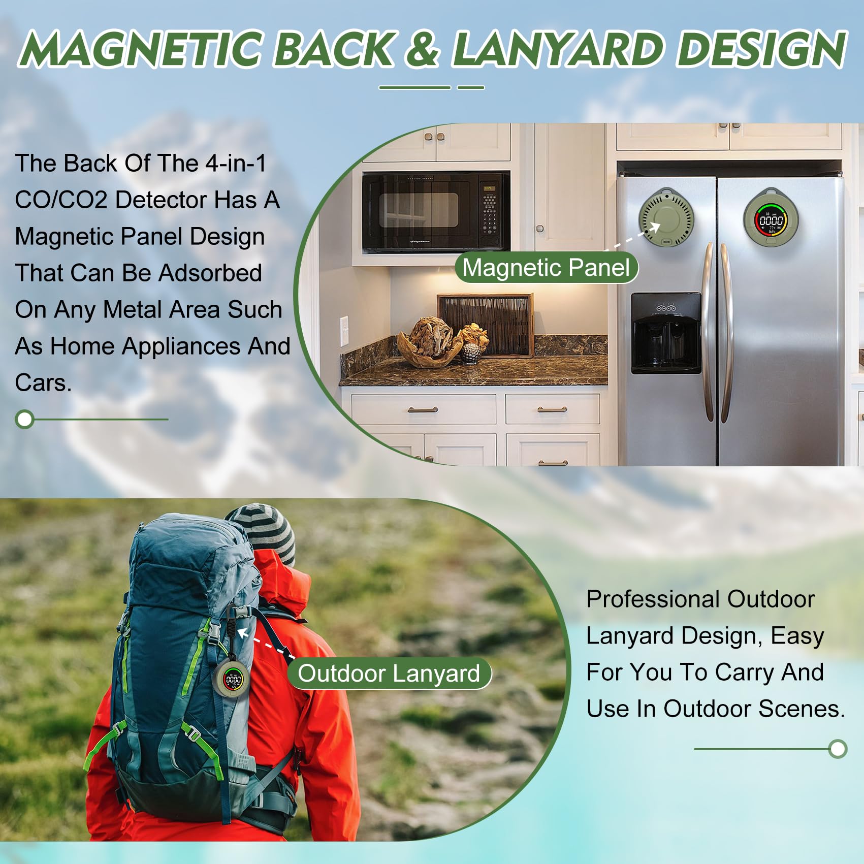 Portable Design with Lanyard & Magnetic Back: Designed for convenience, this CO detector comes with an outdoor lanyard for easy carrying during adventures like camping, picnics, or road trips. The magnetic back allows you to attach it to metal surfaces like appliances or car interiors. Keep it on your table, wall, or take it on the go—your safety, your way!