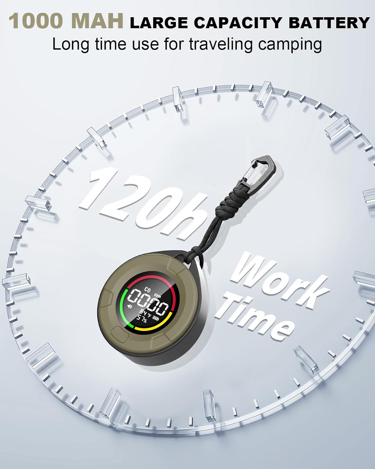 Long-Lasting Battery & Fast Charging: Powered by a 1000mAh Li-ion battery, this compact monitor supports fast charging (10-65W) and fully charges in just 1 hour. Enjoy up to 120 hours of standby time, making it perfect for travel, camping, or everyday use. Stay prepared and breathe easy wherever you go—order yours today!