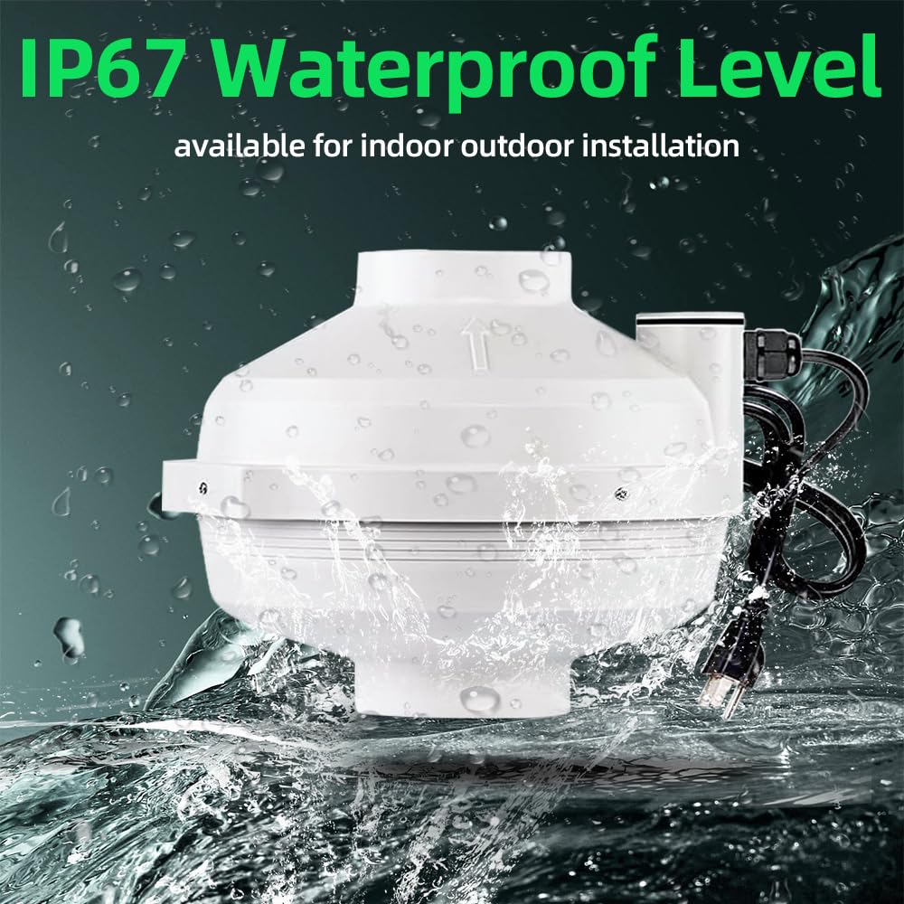 IP67 Waterproof – Built for Indoor & Outdoor Durability: Engineered with premium IP67 waterproof materials and a robust metal impeller, this inline duct fan withstands harsh conditions. Install it anywhere—indoors or outdoors—with confidence. Don’t compromise on quality; choose a fan designed to last!