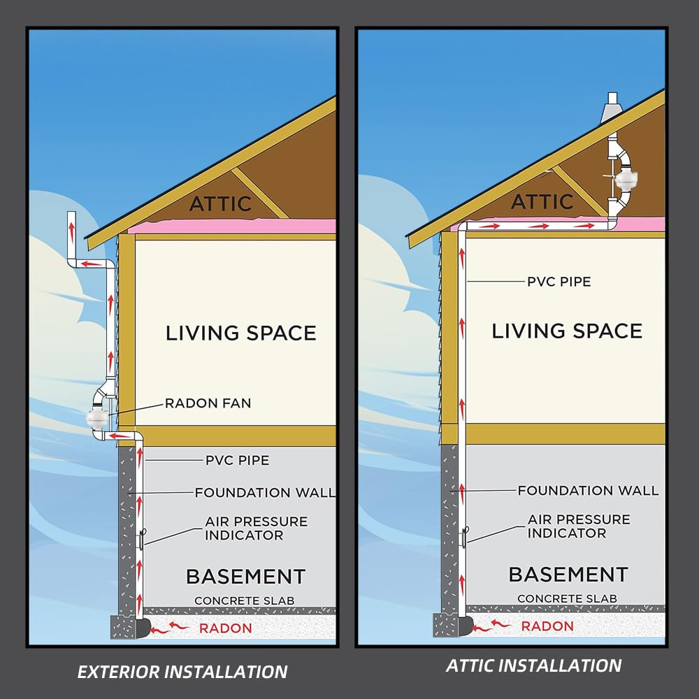 High Air Volume and Strong Air Pressure: With 2600RPM of fan speed, this fan features a higher suction, can effectively and quickly reduce the radon level back to 0.2, specially designed for the home retrofits on radon level mitigation. Perfect replacement of the older version. 3-year warranty, 7-24H online service to assist you