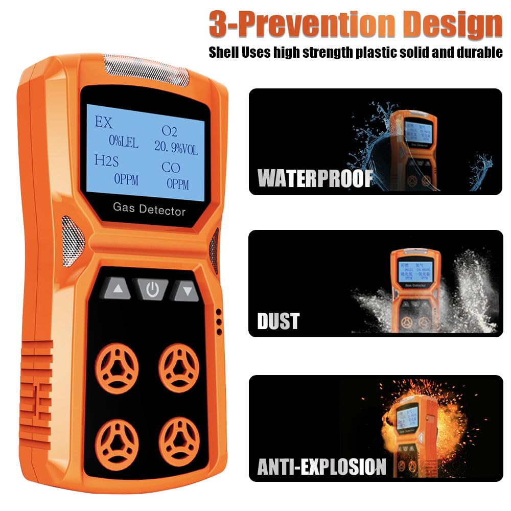 This portable multi-gas monitors are vital in protecting you from the hazards of toxic and combustible gases in confined spaces and dangerous work environments. Typical four gas monitors use an explosive meter multi-gas detector to detect combustible gas (methane, LPG, hexane, propane), carbon monoxide, hydrogen sulfide, & oxygen deficiency/enrichment. Very easy to use and great product.