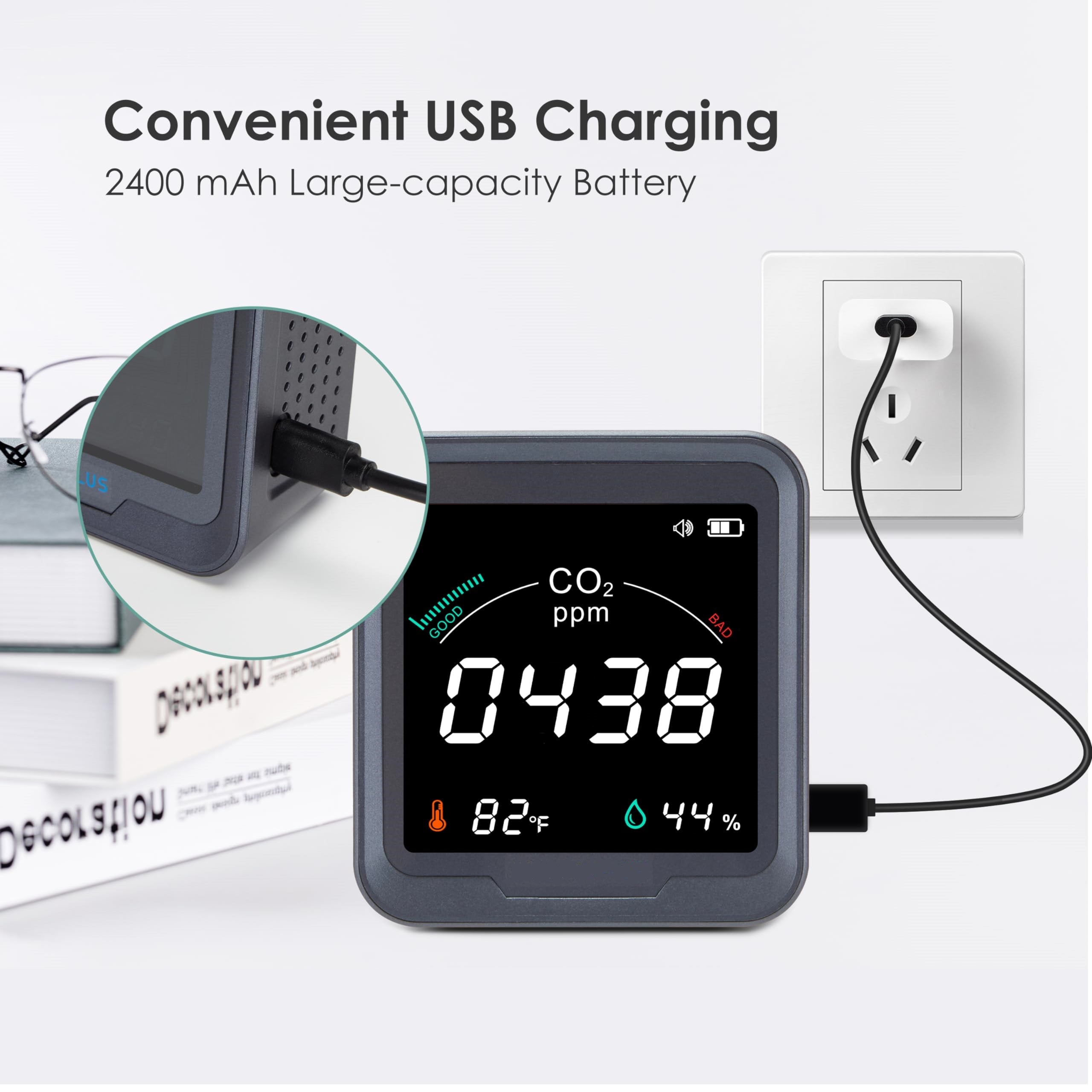 Long-Lasting Battery Life: Equipped with a powerful 2400 mAh lithium battery, this monitor supports extended use without frequent recharging. The large LED screen ensures clear visibility of data, making it easy to track air quality anytime, anywhere.