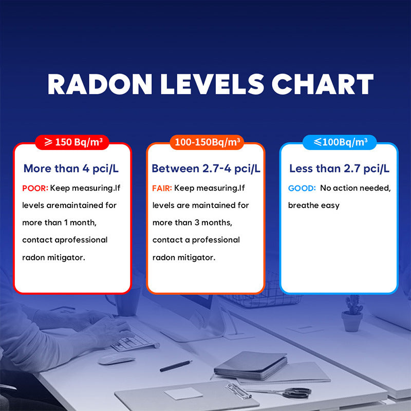According to the latest WHO guidelines, prolonged exposure to radon levels above 2.7 pCi/L (100 Bq/m³ ) can pose serious health risks. For this reason, regular monitoring is essential—particularly in poorly ventilated areas such as ground floors, basements, and garages, where radon concentrations tend to be highest."