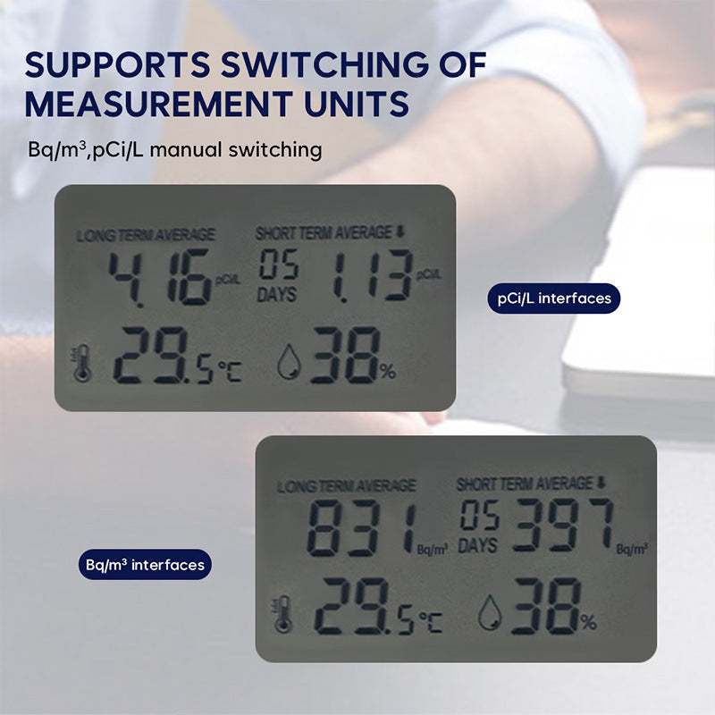 Accurate Radon Gas Monitoring: Displays both long-term and short-term average radon levels, allowing you to track overall trends and recent changes. Also monitors temperature and humidity for comprehensive environmental data.