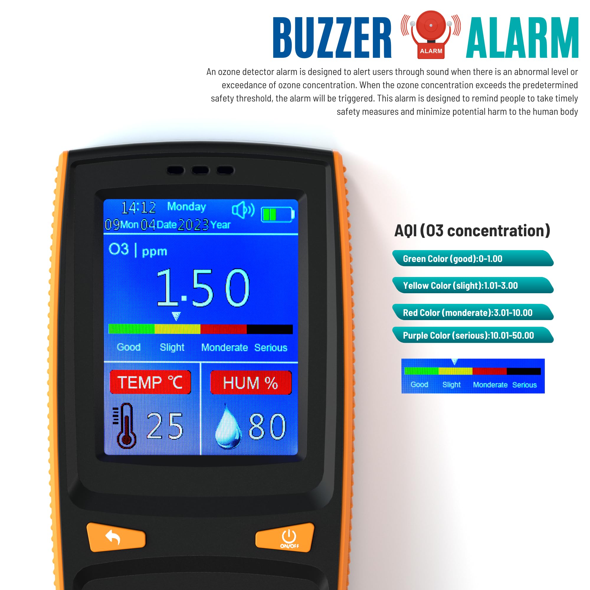 Customizable Ozone Alarms for Safety: Protect yourself and others with adjustable ozone (O3) alarm thresholds. This feature alerts you when ozone levels exceed safe limits, allowing you to take immediate action. Don’t compromise on safety—invest in peace of mind today!