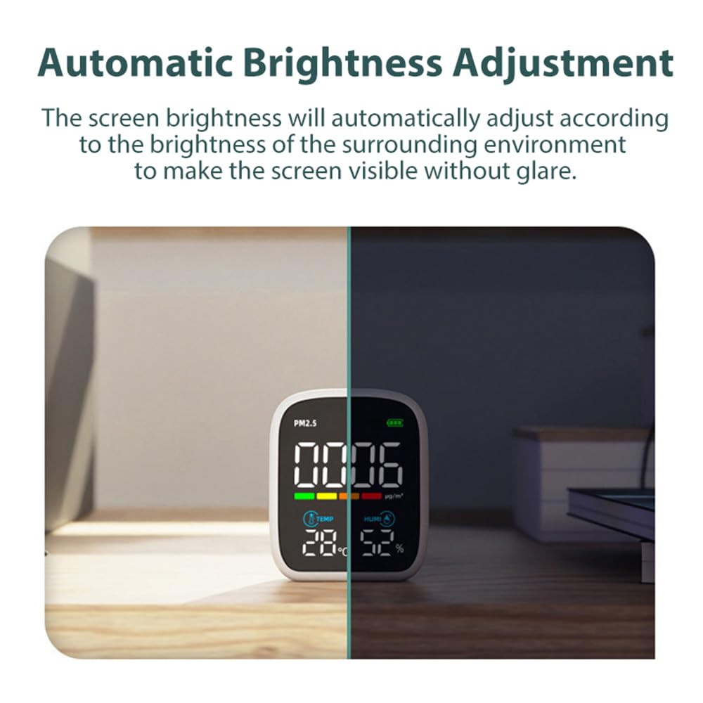 Automatic Brightness Adjustment for Comfort: The screen brightness adjusts automatically based on your environment, ensuring clear visibility without glare. Whether day or night, you’ll always have a clear view of your air quality data. Upgrade to a smarter monitoring experience today!