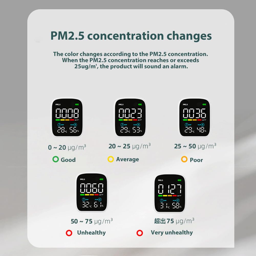 Indoor PM2.5 Air Quality Detector for Home, Office, School Air Quality Tester with PM 2.5, Temperature, Humidity Detector